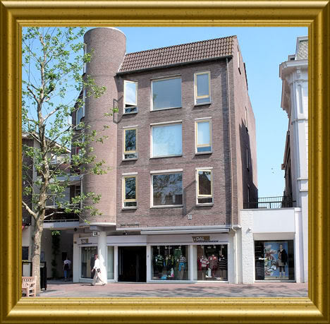 De Beurs staat er op dit gebouw. Op de begane grond zit Naw een winkelpand van Van Dal. Daarboven een appartementencomplex dat helemaal doorloopt naar achteren. De toegang daartoe zit links in het steegje Het Hool.