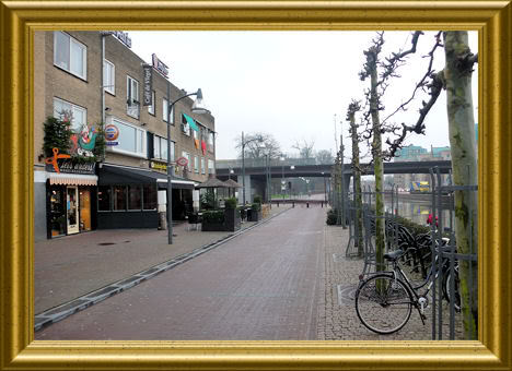 Naw zien we de huidige Kasteellaan, waar feitelijk ook de ingang naar het kasteelpark is. Vruuger was die ingang via een heel mooi poortgebouw. Hierin was (voordat het in 1959 werd gesloopt) notaris H.A.C. Van Keulen het laatst gevestigd. Toch echt zonde dat dit verdwenen is. Rechts zien we nog de trappen van de voetgangersbrug over de kanaal.