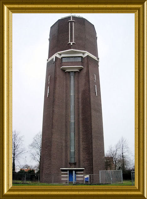 Op de foto van Vruuger (1956) deze watertoren kort voor de sloop.
