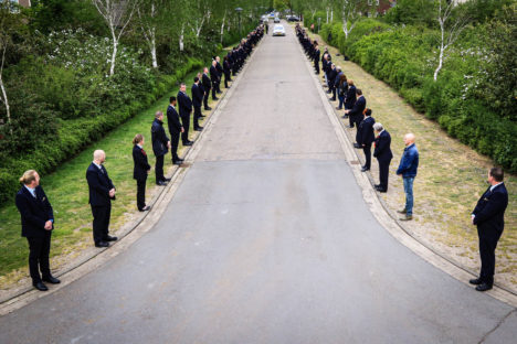 In deze onwerkelijk tijd was het mooi om toch een collegiale laatste groet te kunnen brengen aan onze gewaardeerde collega John. Iedereen hield zich netjes aan de vooraf afgesproken regels. Wij wensen de familie heel veel sterkte bij het verwerken van dit groot verlies.