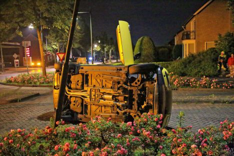 Rond 01.15 uur vannacht werden de hulpdiensten gealarmeerd voor een ongeval op de Windmolenstraat in Mierlo-Hout. Een jongeman die de auto bestuurde kwam van de Hoofdstraat en wilde de Windmolenstraat in rijden. Daar kwam zijn auto op de zijkant terecht en tegen een lantaarnpaal aan. Toen de hulpdiensten ter plaatse kwamen was hij al uit de auto en werd door toegesnelde buurtbewoners opgevangen. De man is in een ambulance onderzocht maar hoefde niet mee naar het ziekenhuis. De auto en de lantaarnpaal liepen schade op.