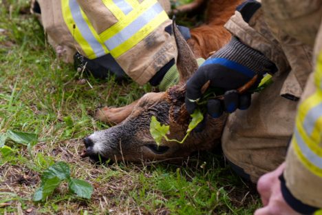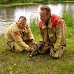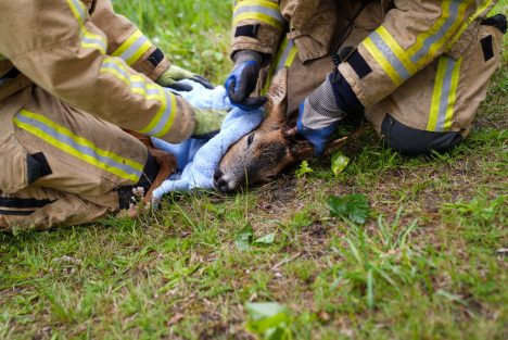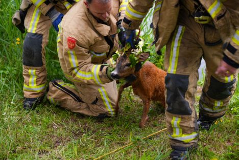 Nadat de brandweer het dier aan de kant had gehaald, is het met de ambulance een stuk verderop weer vrijgelaten.