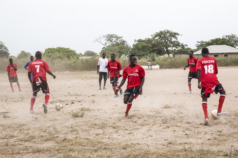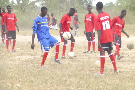 Zaterdags en zondags komen deze jeugdigen bijeen in het dorp Farato Bojang Kunda. Onder leiding van diverse trainers worden zeer gemotiveerd en gedisciplineerd de oefeningen afgewerkt en het partijtje gespeeld. Dit gebeurt altijd onder toeziend oog van de bestuursleden Sambujang Jaiteh en Ebrima Juwara, zie de foto waarop die 2 trots het contract met de naam van hun voetbalacademie tonen.
