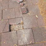 Fietspad bij Leonardus speeltuin W. Ebbelaan, alle tegels spleten ertussen, met de fiets bijna gevallen vorige week, wiel schiet ertussen!!