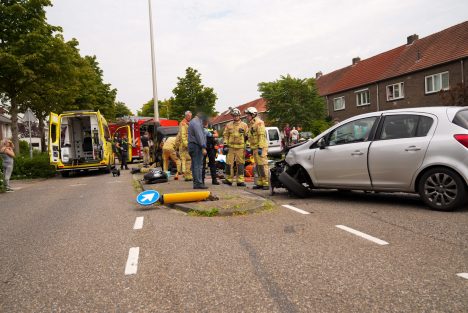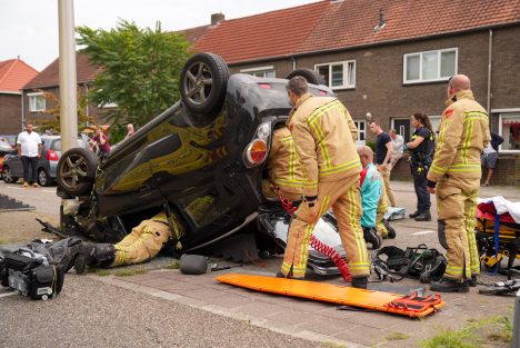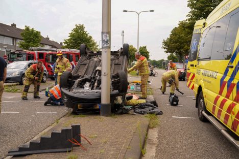 Op de Burgemeester van Houtlaan zijn rond het middaguur 2 personenauto’s met elkaar in botsing gekomen. 1 Van de voertuigen belandde daarna op zijn dak en kwam tot stilstand tegen een lantaarnpaal. Een gewonde vrouw is uit de auto gehaald door de om 12.06 uur gealarmeerde brandweer. Zij werd met onbekende verwondingen per ambulance naar het ziekenhuis gebracht.