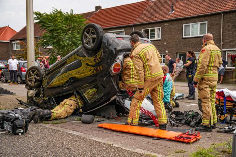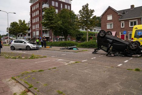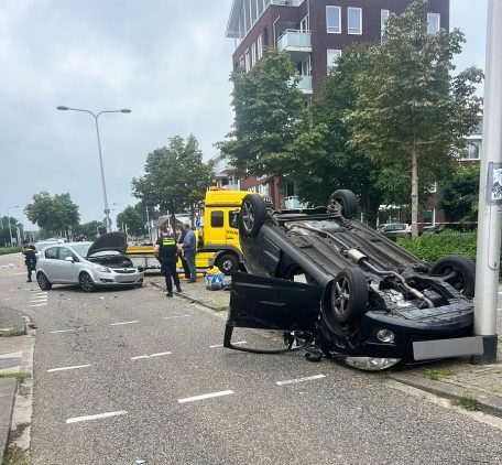 Op de Burgemeester van Houtlaan zijn rond het middaguur 2 personenauto’s met elkaar in botsing gekomen. 1 Van de voertuigen belandde daarna op zijn dak en kwam tot stilstand tegen een lantaarnpaal. Een gewonde vrouw is uit de auto gehaald door de om 12.06 uur gealarmeerde brandweer. Zij werd met onbekende verwondingen per ambulance naar het ziekenhuis gebracht.