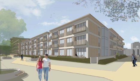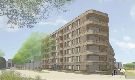 Dat en meer is namelijk te lezen op de website van de woningcorporatie. Op de pagina van het project Watermolenwal – Zuidrand staat dat er aan de kant van de Watermolenwal een gebouw met 67 appartementen komt voor mensen met een middeninkomen. En dat er in nieuw gebouw aan de zijde van de Matthijs Vermeulenstraat 37 appartementen komen. Deze 37 zijn allemaal sociale huurwoningen en komen in plaats van de nu nog bestaande sporthal. De parkeergarage eronder wordt gerenoveerd en gaat plaats bieden aan de auto’s van de nieuwe bewoners. De afbeeldingen onderaan geven je een indruk hoe die 2 gebouwen eruit komen te zien.