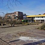 De bomen op het parkeerterrein voor de City Sporthal zijn al gekapt zoals je rechtsboven ziet op foto die Peter Warmerdam maakte. Voor 1 juli wil Woonpartners beginnen met de inrichting van de bouwplaats en het strippen/slopen van de sporthal en de betreffende appartementen. In het laatste kwartaal van dit jaar wordt er dan begonnen met de fundering en kelder van de appartementencomplexen.
