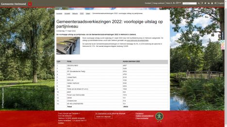 Maar nu we alle cijfertjes eens nader bekeken hebben (nadat Mien er in een reactie hierboven op wees), lijkt dat de opkomst gisteren in Helmond flink hoger was. Hoe hoog precies kunnen we nu nog niet bepalen. Het ANP noemde gisteravond 46,7% voor Helmond. Maar het is minimaal (34.528 geldige stemmen / 74.359 kiesgerechtigden = ) 46,4%. Dat scheelt met ruim 7% dan dus tenminste ruim 5 duizend extra uitgebrachte Helmondse stemmen ten opzichte van gisteravond: een slok op een borrel. 🙂 Of dit hogere percentage iets uitmaakt voor de uitslag voor de politieke partijen, weten we nu nog niet.