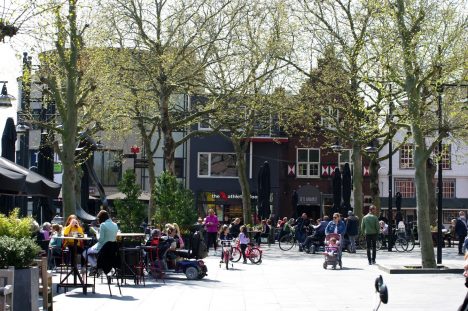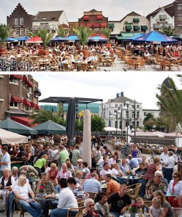 Morgen om 12.00 uur gaan ook in Helmond de terrassen weer open. Die waren sinds 14 oktober vorig jaar voor de tweede keer gesloten vanwege corona. Voor de Helmonders die niet meer weten hoe een druk Havenplein eruit ziet, de foto’s rechts.