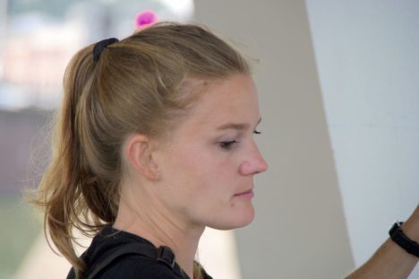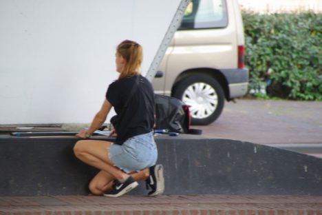 Wim van den Broek maakte gisterochtend de onderstaande foto’s van kunstenaar Ilse onder de Traverse.