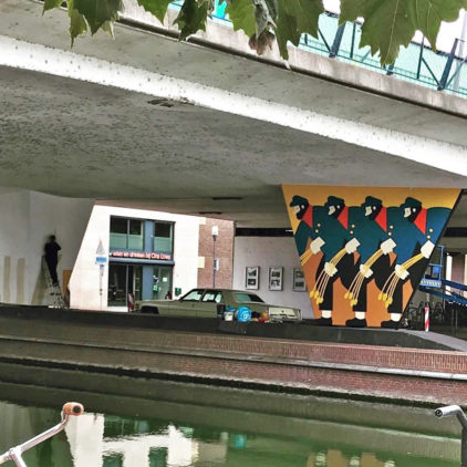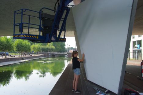 Zoals hieroven aangekondigd begon kunstenaar Ilse Weisfelt gisteren met haar mural over Van Gogh op de pilaren van het viaduct van de Kasteel-Traverse over het kanaal. Deze mural is onderdeel van het project Van Gogh Murals van Zuidlijn. Op vrijdag 6 september zal de mural feestelijk worden onthuld door wethouder Antoinette Maas zo laat de gemeente vanavond weten.