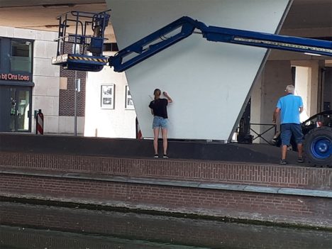 We hebben helaas nog geen foto’s van de werkzaamheden die de kunstenaar gisteren begon. Fijn als jij die wel hebt en mailt naar [email protected] dan zetten we die foto hieronder in een reactie.