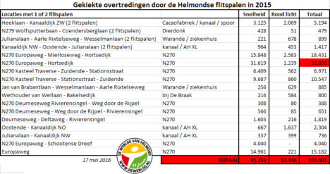 Hieronder het overzicht met alle 21 Helmondse flitspalen en hun 2015-resultaten: