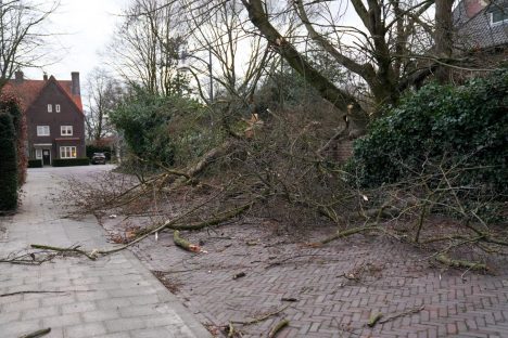 De storm Eunice trekt vanaf vanmiddag ook over onze stad en zorgde inmiddels voor de eerste stormschades. Op de eerste 2 foto’s zie je de Beatrixlaan in de Binnenstad, daaronder een afgebroken verkeerslicht op de Engelseweg op het industrieterrein. De vierde foto werd gemaakt in de Professor Dondersstraat in de wijk Warande waar de boom in de top afbrak.