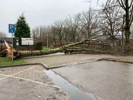Harrie Fotografie ging naar het Tiendplein in de Binnenstad en fotografeerde de 2 geparkeerde auto’s die beschadigd werden door een gevallen boom. Voor zover bekend raakte er niemand gewond. De brandweer heeft de boom zoals je ziet al gedeeltelijk ingekort.