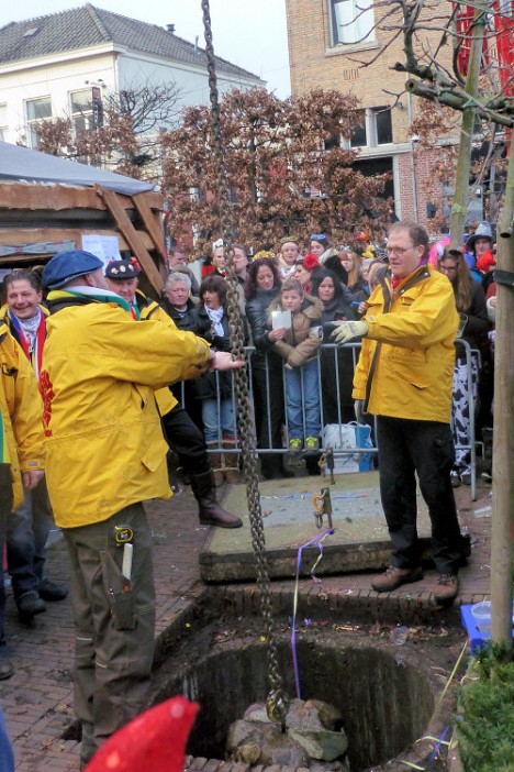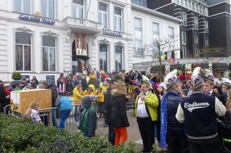Vanmiddag was het openingsfestijn stadscarnaval op het plein van de Hoftempel West-Ende. Onder de aanwezigheid van veel carnavalsverenigingen lieten de dansmarietjes hun kunsten zien, werden er liedjes gezongen en muziek gemaakt. Ondertussen dronken sommige carnavalsvierders een pilsje. Dat alles nog voordat de De Kei omhoog werd gehaald.