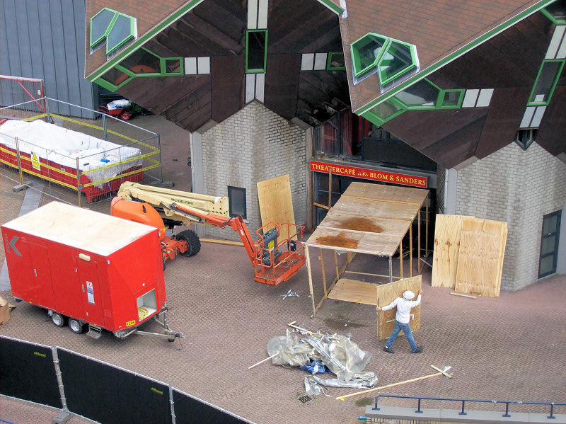 Hieronder de (te vergroten) foto’s van alle voorbereidingen. De eerst 4 foto’s werden vorige week gemaakt toen er 2 dagen werd gewerkt. De volgende 7 zijn van maandag. Gisteren was het blijkbaar weer geen weer om te werken, want er was niemand te bekennen.