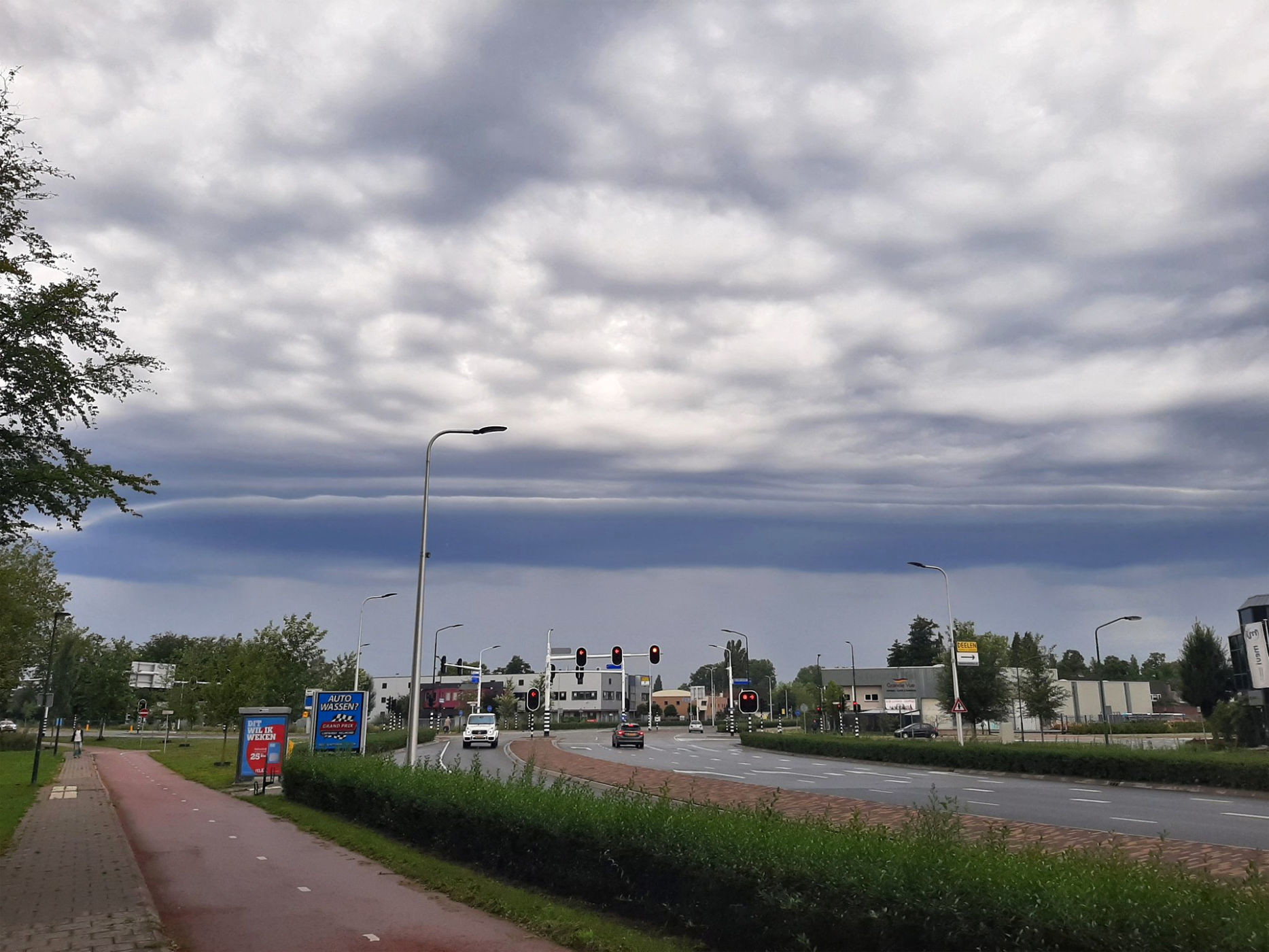 Vanochtend verscheen er boven Helmond shelf cloud, letterlijk vertaald een plankwolk. Vico Hoozemans en Linda van Duren maakten respectievelijk vanaf de Heeklaan en Brouwhuis de onderstaande foto’s van deze bijzondere wolkenvorm.