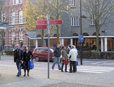 Zoals op onderstaande foto van gisteren te zien, is er actie genomen bij de bewegwijzering op de hoek van de Molenstraat en de Zuid Koninginnewal. De 2 kromgebogen borden zijn al verwijderd.