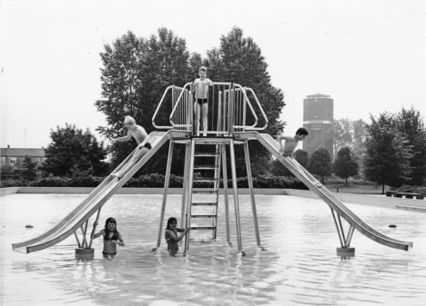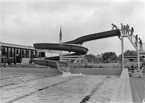 The good old days, wat hebben we hier van genoten. Helmond is hard aan toe aan een buitenzwembad met glijbanen en schoon blauw water. Zo ie zo voor de jeugd!