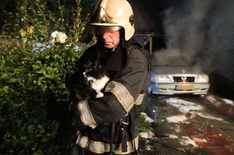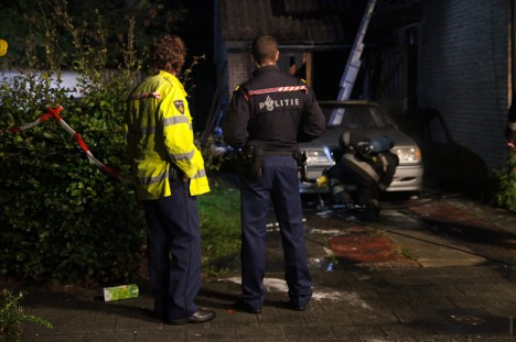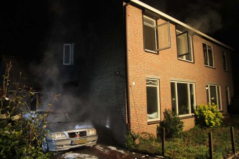 De kat werd door de brandweer van de zolder gehaald. Het beestje had zich daar verstopt. De auto kan als verloren worden beschouwd. De woning liep rook- en waterschade op. Onder meer de voordeur, garagedeur en het dak van de garage werden door de brand beschadigd. Er wordt uitgegaan van brandstichting. Of er een relatie is met de brandstichting aan 3 woningen gisternacht is niet zeker, maar ligt wel voor de hand. De politie blijft bij de woning voor bewaking.