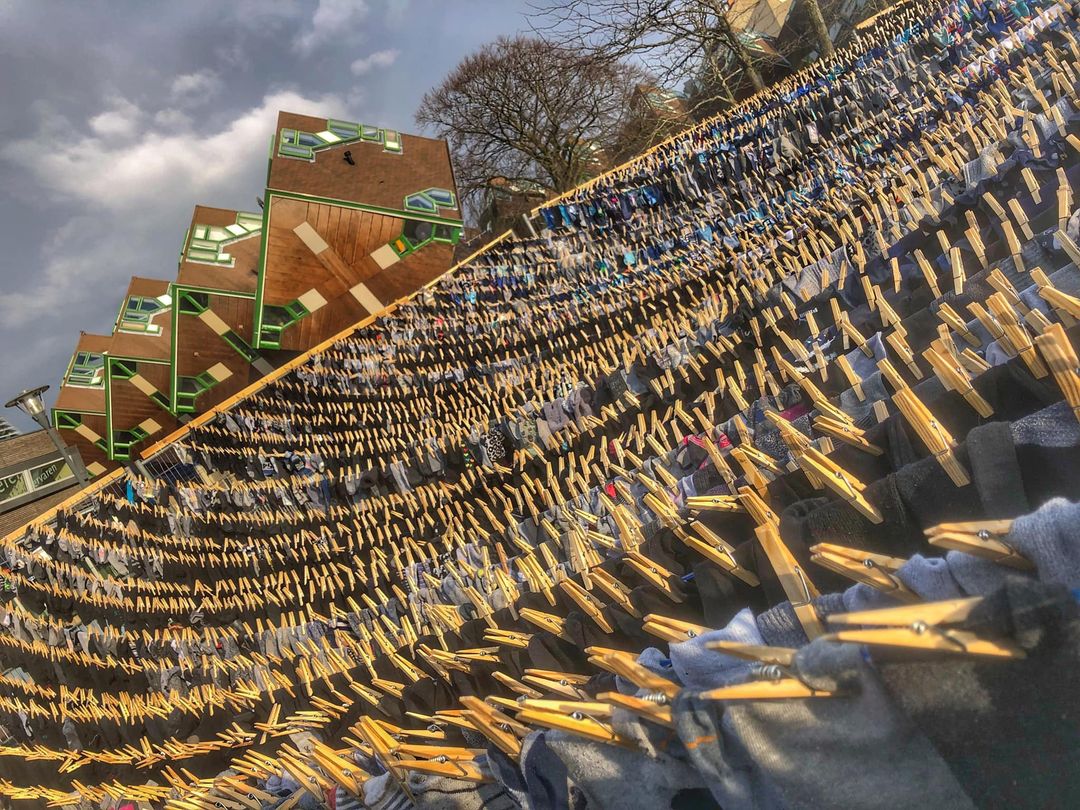 Er zijn vandaag dus al meer dan 44.000 sokken opgehangen op het Piet Blomplein bij Bibliotheek Helmond. Waarvan een paar duizend door een team van de Bibliotheek!