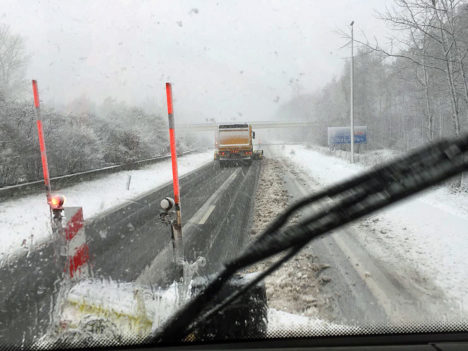 Sneeuwschuivers maken de snelweg tussen Helmond en Eindhoven schoon en Hennie van Boxmeer had de foto daarvan: