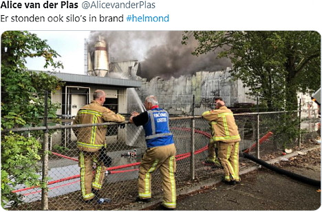 Ben Hur plaatste deze video op Twitter en meldde “Pittig brandje bij Huijbregts Helmond”