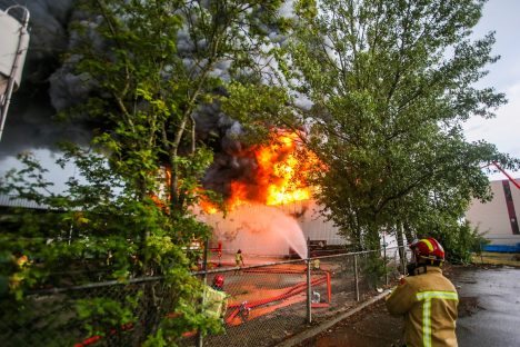 “De industriebrand is brandmeester. We gaan afschalen en nablussen. Het nablussen zal nog enkele uren in beslag nemen” meldde de brandweerwoordvoering gisteravond. En later meldde onze gemeente “de brand is onder controle”. Een kwartier geleden hervatte de brandweer het nablussen.