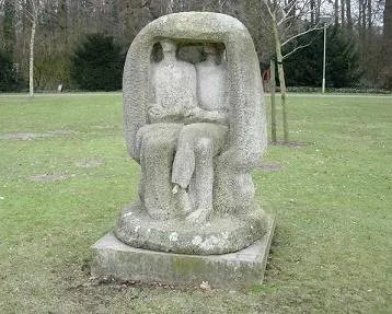 Dit beeld in de Warande met als titel “2 in een stoel” is gemaakt uit Franse kalkzandsteen. In zijn carrière heeft Couzijn zich met vele vormen van kunst bezig gehouden, van schilderen en tekenen tot beeldhouwen.