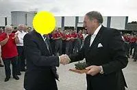 Wie is de persoon wiens gezicht achter het gele rondje zit?