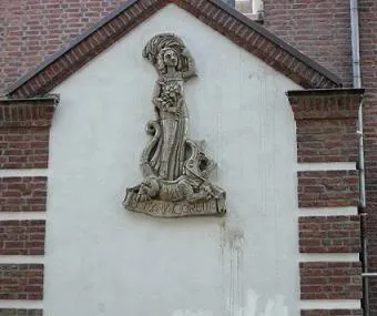 Met een beetje een beteuterd gezicht moeten we erkennen dat we niet weten of het iets te maken heeft met St. Margaretha van Antiochië die ontsnapt uit de draak. De gelijkenis met de afbeeldingen is wel erg opvallend inderdaad. Dat jij zo’n gelijkende afbeelding weet te vinden, doet haast vermoeden dat jij er meer van weet.