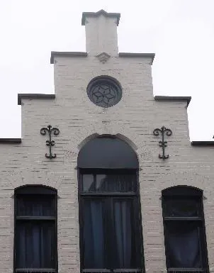 Wat is het woord dat als eerste onder dit deel van deze gevel staat?