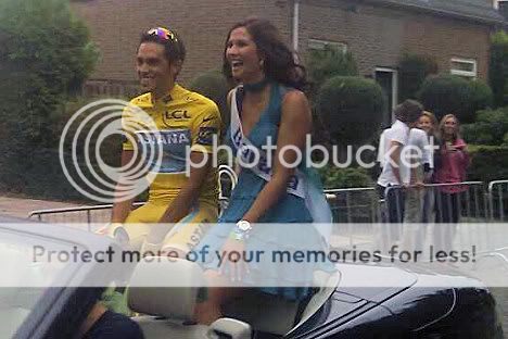 Hieronder foto’s van het ererondje van Alberto Contador met de Stiphoutse rondemis Anouk Ballering (door FeliX) en het begin van de profronde met Gesing, Contador en Schleck voorop (door Jeffrey de Wit).