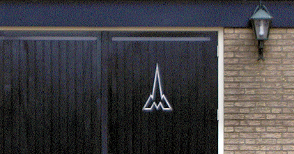 Met haar voeten op de grond maakte José van Belkom de bovenstaande foto’s van deze garagedeur bij dit woonhuis in Dierdonk.