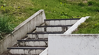 Het nut van dat bovenste trapje zal binnen nu en afzienbare tijd wel duidelijk worden, deze trappen leiden naar de nieuwe groenzone rondom De Veste, die nu langzaamaan bijna gereed is. Vandaag beginnen ze met de asfalteringswerkzaamheden van de wandelpaden in de groenzone. In de buurt van de grote “uitzichtberg” (300 meter westelijk van de trap op de foto), zal ook nog een grotere trap worden gebouwd, daar zijn de betonnen elementen al voor gelost enkele weken terug.
