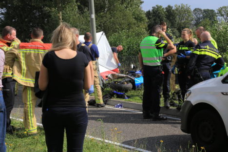 De politiewoordvoering meldt dat het een motorrijder betreft. Op de motor zat ook een vrouw, zij raakte gewond en is inmiddels naar een ziekenhuis vervoerd. De politie doet onderzoek. Het is nog onduidelijk wat er precies is gebeurd.