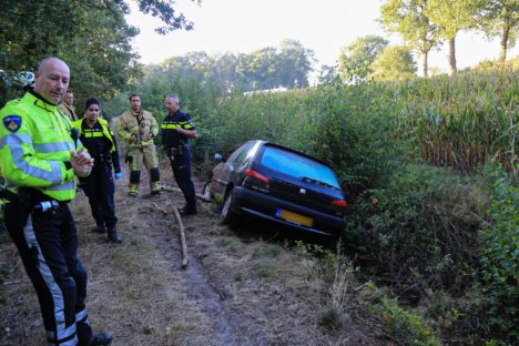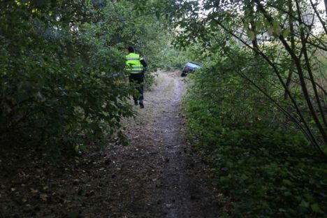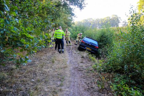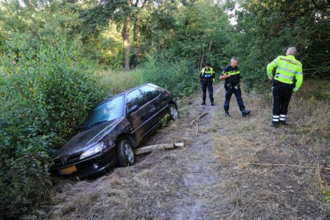 Naar alle waarschijnlijkheid is de bestuurder van de auto over het wandelpad door de bossen gereden en belandde de auto daarbij in de droogstaande sloot/greppel. Het was duidelijk te zien dat er geprobeerd was de auto daaruit te krijgen. Toen dat niet lukte is de auto achtergelaten.