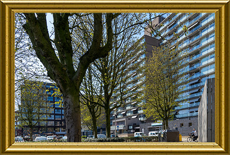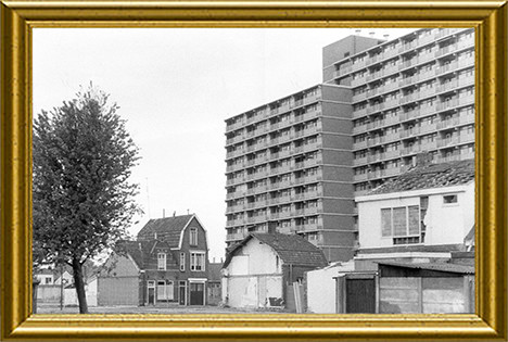 Naw zie je de Ameideflat die uit 1973 dateert. Daarvoor stond er een fabriek.