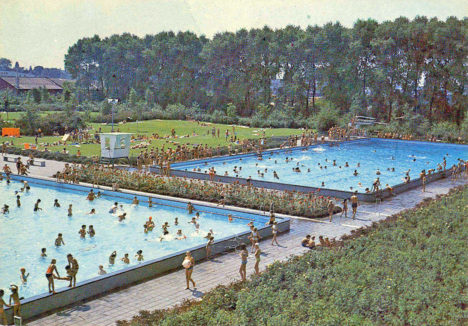 The good old days, wat hebben we hier van genoten. Helmond is hard aan toe aan een buitenzwembad met glijbanen en schoon blauw water. Zo ie zo voor de jeugd!