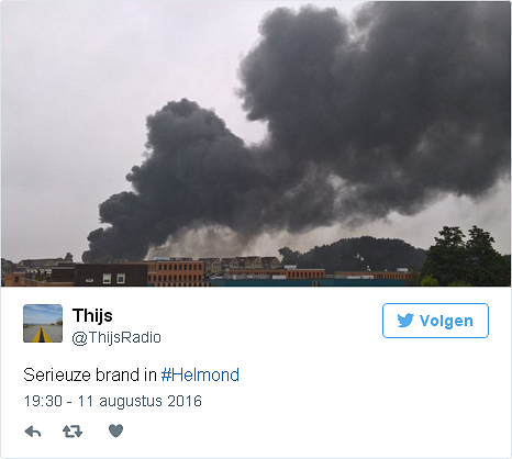 De brandweer is nu nog aan het nablussen. Zoals Toon hierboven al meldde, waren er eerder vanochtend vrij grote witgrijze rookpluimen boven Helmond te zien. Nu zijn dat nog kleine pluimpjes die te zien zijn als je weet waar je moet kijken.