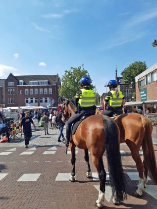 Sinds kort stapt de bereden politie dwars door het centrum van Helmond. Wat eerder te zien was bij evenementen kun je nu op een gewone doordeweekse dag tegenkomen: politie te paard. Ik vind het een heerlijk gezicht en met mij veel Helmonders getuige de positieve reacties die de bereden agenten van het publiek krijgen.