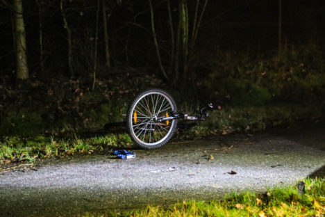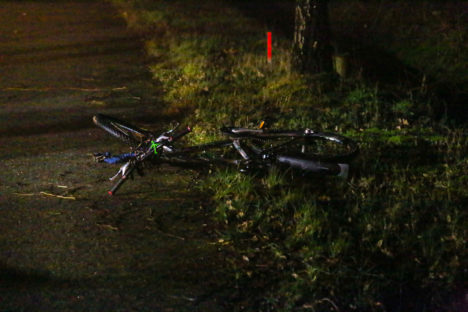 Ik zie een fiets liggen; hooguit een speelgoed kinderfiets; geen deugdelijke verlichting of voldoend aan de verplichte zaken. Daar zat dus een “vrouw ” op, in haar uppie om 0230 snachts , niet op fietspad maar op gedeelde rijbaan met achterop komende auto…zien jullie het achterspatbord?