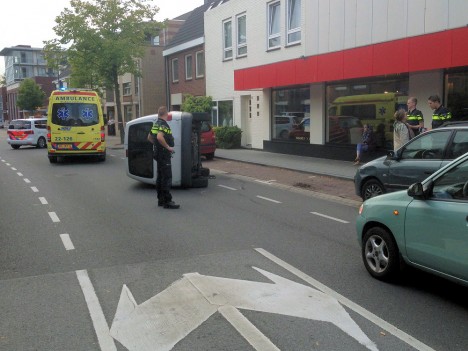 De politie doet onderzoek naar de oorzaak van het ongeval ter hoogte van Gruyters Wonen. De bestelauto is door een bergingsbedrijf weggetakeld.