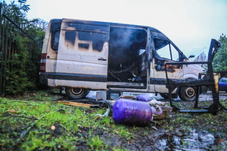 Op de Molenstraat brandde vanochtend rond half 8 een geparkeerde bestelbus (camper?) uit. Daarin lagen onder meer gereedschap, flessen lachgas en een oven.