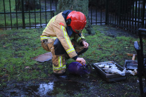 Toen de brandweer arriveerde stond het voertuig al goed in de vlammen. In de bus lagen ook potjes met brandstof voor warmhoudbakken. Uit de bus was de accu verwijderd en rond de bus lagen spullen die vermoedelijk uit de bus komen. De politie doet verder onderzoek. Dat meldde Harrie Fotografie zojuist aanvullend en hij mailde ook de onderstaande foto’s.