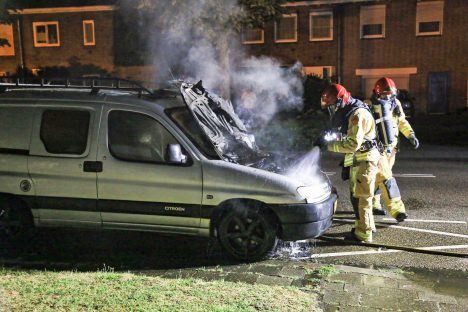 Om 23.51 uur werd de brandweer gealarmeerd voor een autobrand aan de Burgemeester van Houtlaan. Hoewel de brandweerkazerne om de hoek zit, konden zij toch niet voorkomen dat de bestelauto grote schade opliep.