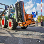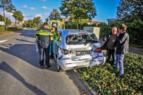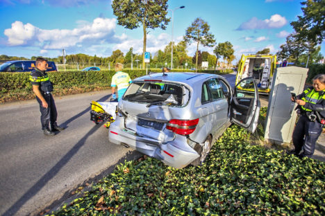 De met een maaier uitgeruste tractor veroorzaakte veel schade aan de achterzijde van de Mercedes. De kruising lag na het ongeval bezaaid met glas en werd daarom tijdelijk afgesloten voor verkeer. Zoals je wellicht al eerder las, waren er vorig weekend wegwerkzaamheden op dat kruispunt. In het weekend van week 42 wordt er weer bij die brug gewerkt.