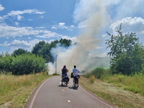 In de berm van het Piet van Bokhovenpad ter hoogte van de Vossenbeemd zijn vanmiddag een aantal balen met gras in brand geraakt. Flinke rookwolken waren het gevolg. Die grasbalen daar op het industrieterrein werden met behulp van een kraan uit elkaar gehaald om te kunnen afblussen. De om 15.12 uur gealarmeerde brandweer zette daarvoor 2 blusvoertuigen in.